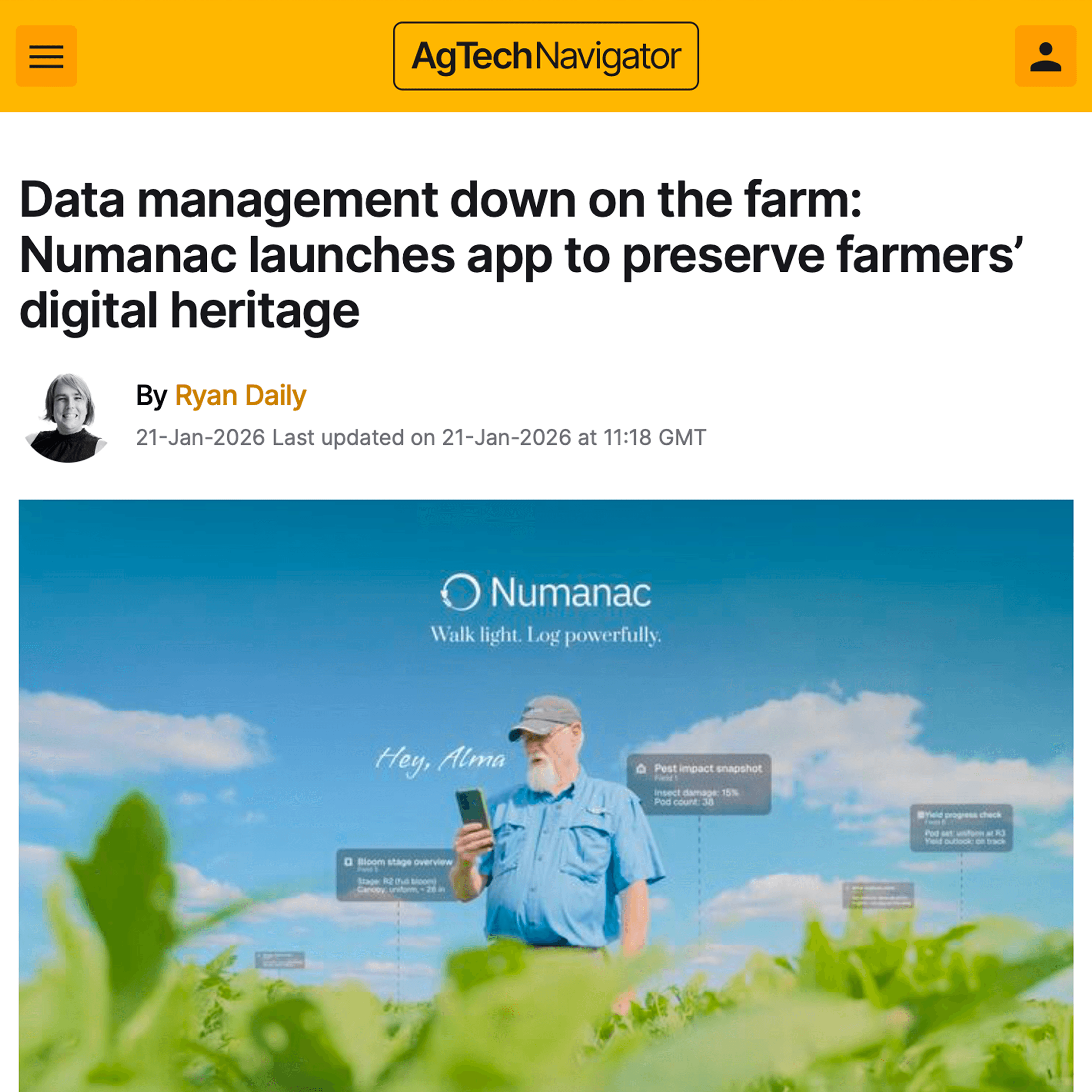 Numanac Featured on AgTech Navigator